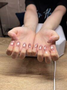 こんにちは!ネイリストの村松です!今回はちゅるんとマグネットネイルにうえからピンクを重ねてグラデーションにしました!