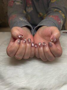 今回はくすみモーヴをベースに、ミラーとゴールドをさりげなくプラスした大人ネイル。