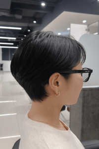 襟足をタイトに引き締め、全体をコンパクトにまとめたシャープなショートスタイル。 無駄な重さをそぎ落としたことで、横顔のラインがよりすっきりと際立ち、きりっと洗練された印象に仕上がります。