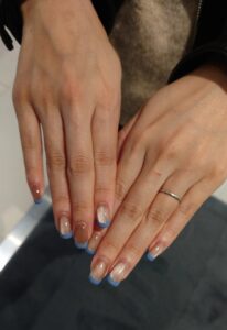 ブラウンのマグネットにくすみ感のあるブルーでフレンチをしてみました。