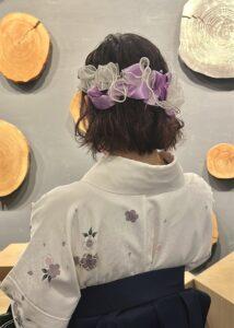 袴に合わせて白と紫のリボンでアレンジしました🤍💜