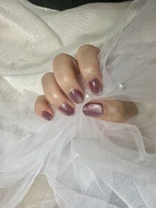 落ち着いたトーンのパープルに、繊細なラメがたっぷりと。