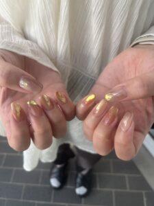 オレンジベースに、ゴールドをプラスして秋らしい雰囲気に。