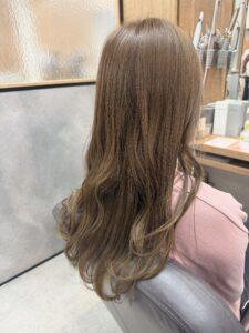 ロングヘアはどうしても毛先の乾燥やダメージが出やすいですが、カラーと同時にしっかりトリートメントを入れることで指通りなめらか&まとまりのある仕上がりに◎
