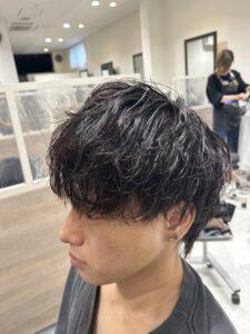 顔まわりにかかる毛束が目元の印象を強めてくれるので、メンズパーマ初心者にもおすすめ。