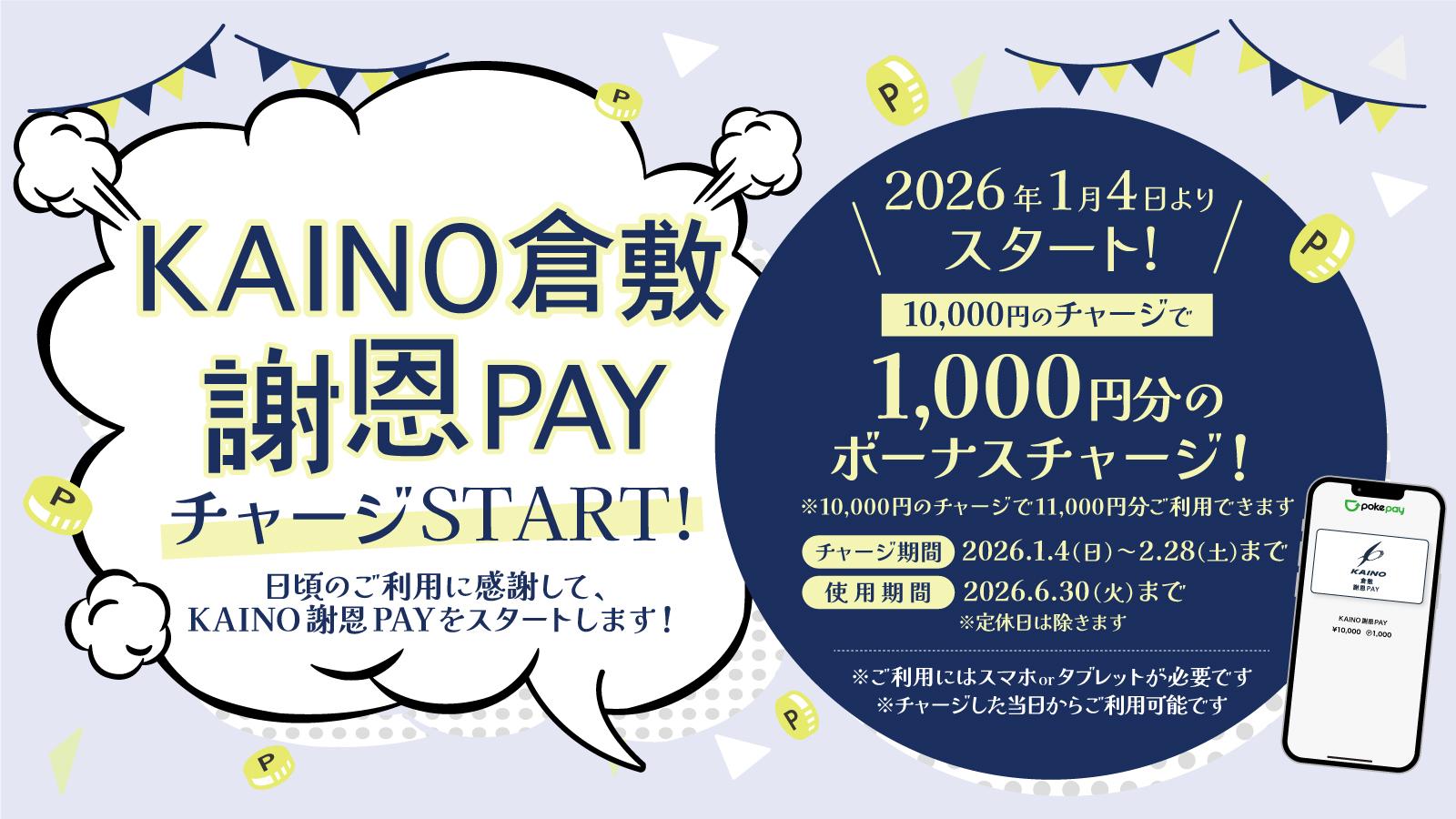 KAINOイオンモール倉敷店 謝恩PAYチャージ期間開始のご案内💰