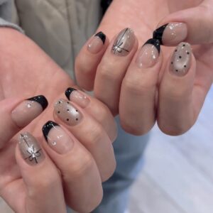 今日は黒のドットとリボンで作る甘すぎないガーリーネイルのご紹介です💁♀️