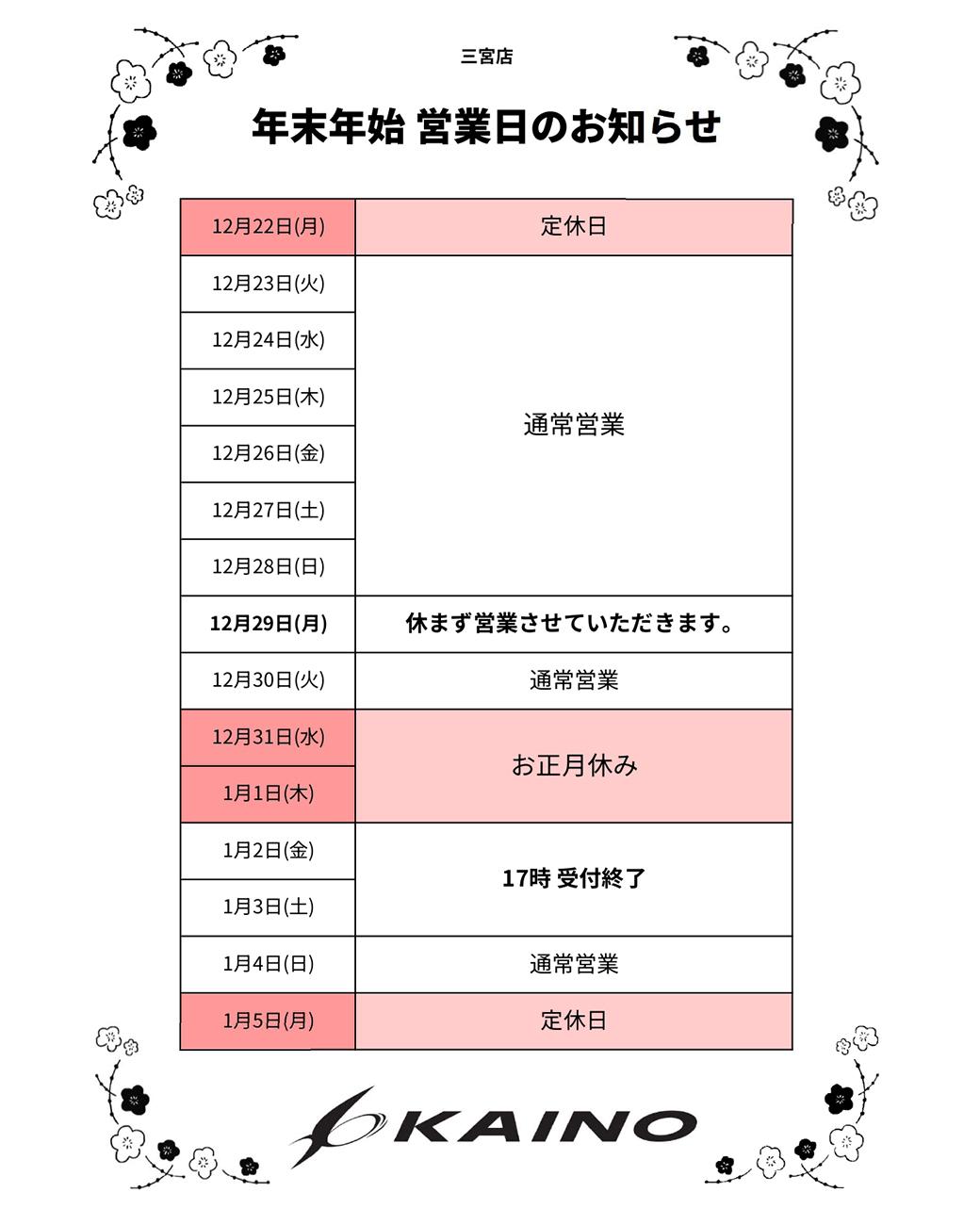 ★年末年始営業のご案内★KAINO arms 三宮店 2025>>>2026