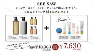 人気のSEE/SAWシャンプー&トリートメントセット500ml(バランス/スムース/タイト)が、11月・12月限定で30%OFF✨
