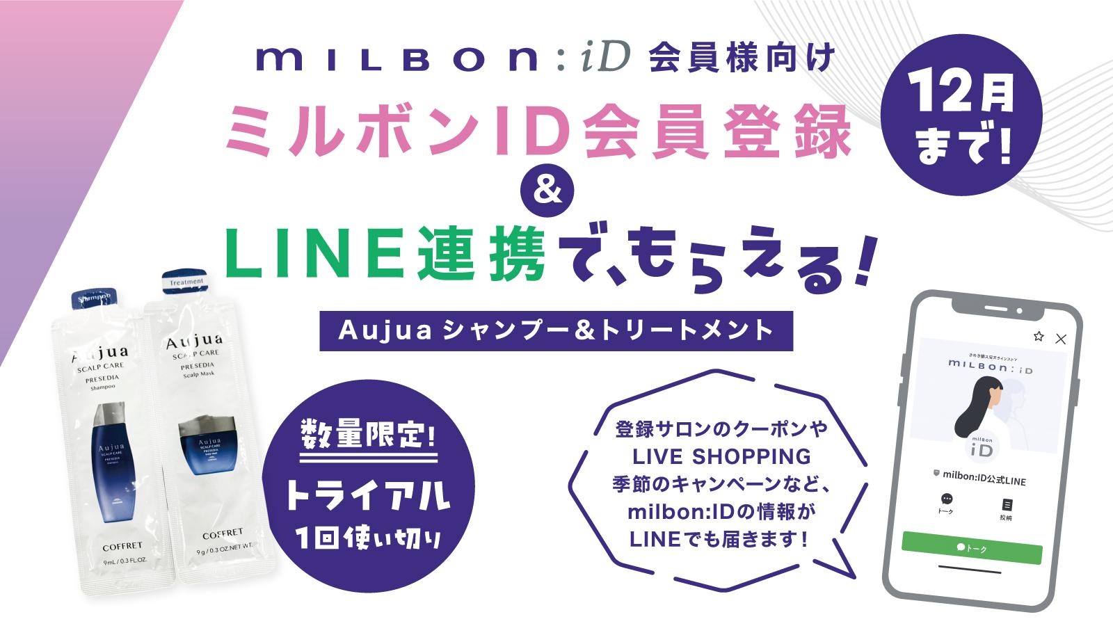 さらに公式LINEスタート記念として、milbon:iDのお友達追加&ID連携でオージュアトライアルパックをプレゼント🎁(※好評につき12月末まで延長決定!無くなり次第終了となります。)